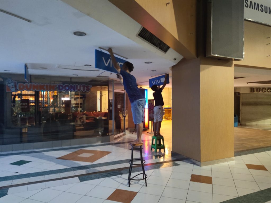 Nama Proyek: Pelepasan Unit Lampu Gantung (Hanging Lamp) Vivo Klien/Brand: Vivo Indonesia Lokasi: Plasa Simpang Lima, Semarang, Jawa Tengah Tahun: Juli 2020 Kategori: Maintenance Media Iklan / Bongkar Pasang Signage